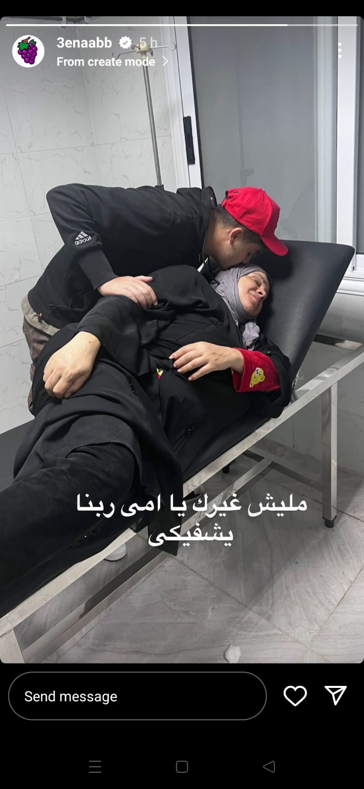 ونشر عنبة، صورة تجمعه بوالدته عبر خاصية بموقع تبادل الصور والفيديوهات انستجرام، وكتب قائلًا: مليش غيرك يا أمي ربنا يشفيكي.