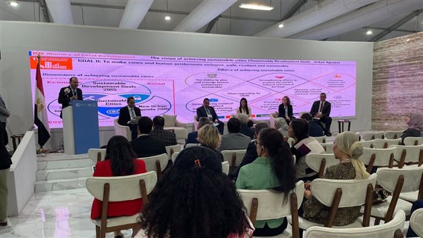 وعرض الهلباوي، جُهود الدولة لتحقيق استدامة المدن، ومنها تطوير عواصم المحافظات، تطوير منظومة إدارة المخلفات، دعم الاقتصاد الأخضر، تحويل السيارات والمركبات للعمل بالغاز الطبيعي، التطوير الحضري المتكامل للتخلص من العشوائيات، تطوير نظم ومجالات عمل الإدارة المحلية، وتشجيع استخدام مصادر الطاقة النظيفة.