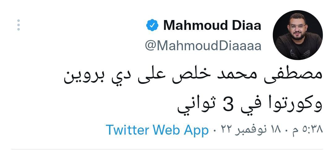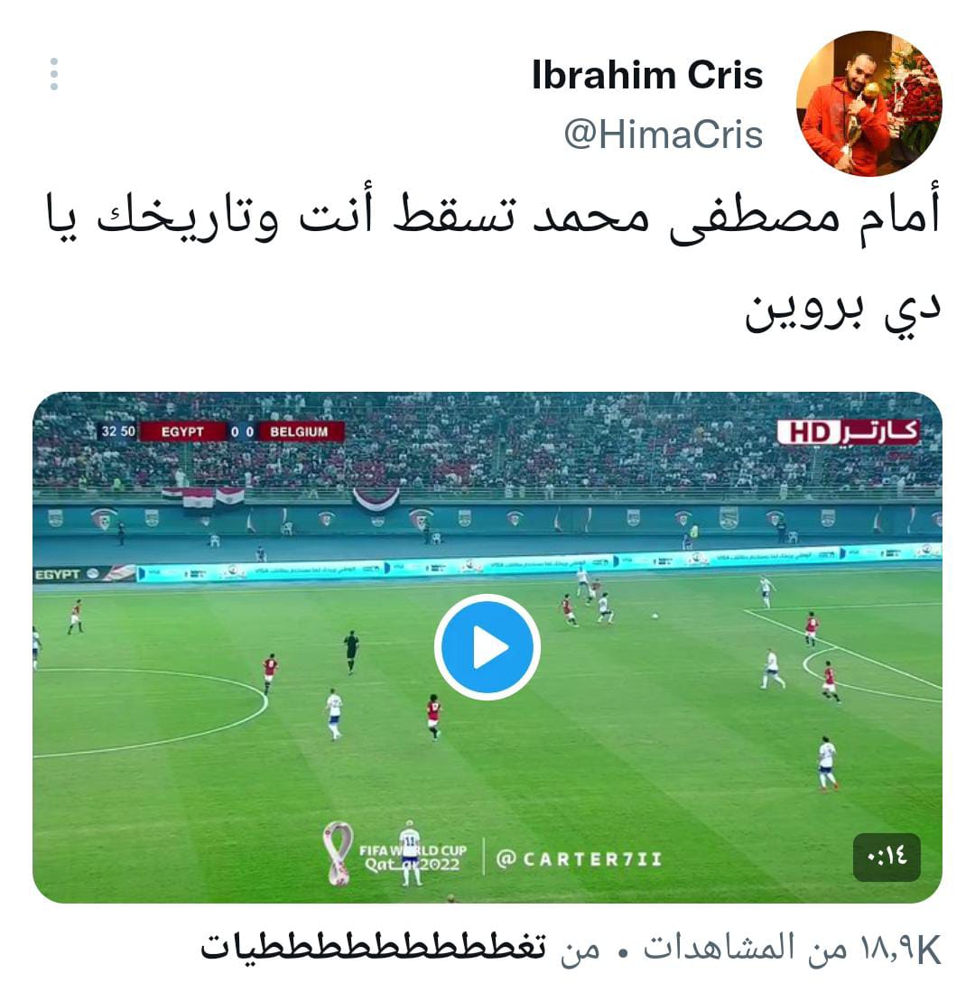 وكتب أحد المستخدمين: أمام مصطفى محمد تسقط أنت وتاريخك يا دي بروين، وعلق محمود ضياء: مصطفى محمد خلص على دي بروين وكورتوا في 3 ثواني.