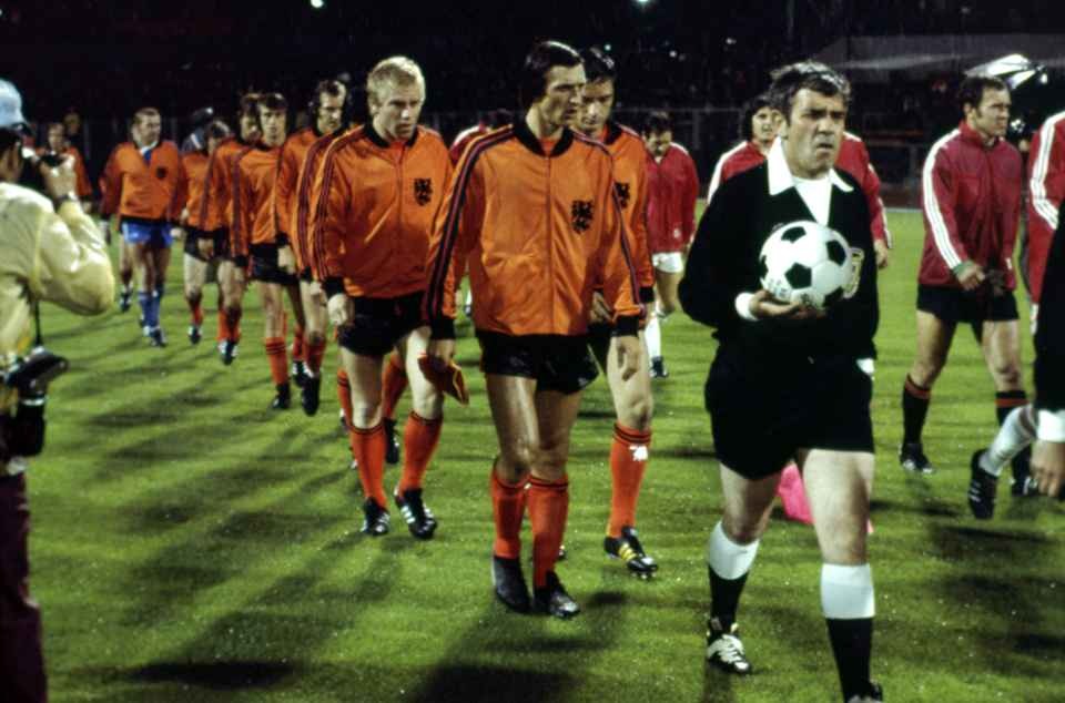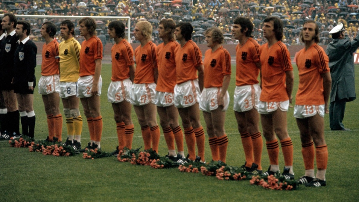 أما على صعيد المونديال، فإن يوهان كرويف كان مُجبرًا أن يكون مختلفًا في قميصه عن باقي زملائه في المنتخب الهولندي خلال نسخة كأس العالم 1974، حيث أصر على ارتداء قميص غير مشابه لقمصان بقية زملائه في منتخب الطواحين؛ بسبب عدم رغبته في الترويج لشركة أديداس التي كانت راعيًا رسميًا لمنتخب هولندا وقتذاك، وصممت قمصان هذه النسخة من المونديال بطريقة الثلاثة خطوط التي تشتهر بها، في ظل توقيع كرويف عقد رعاية مع شركة بوما.