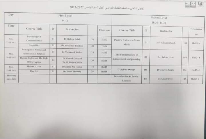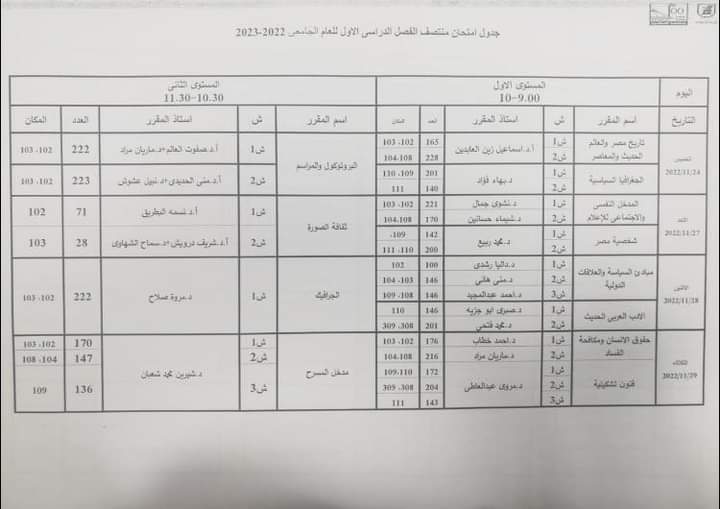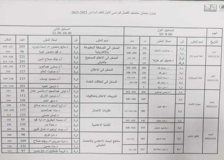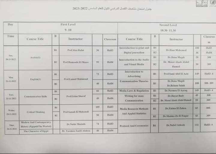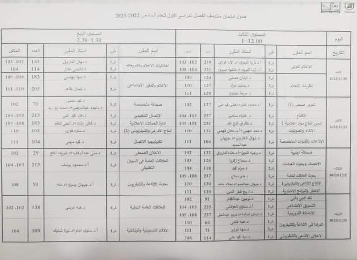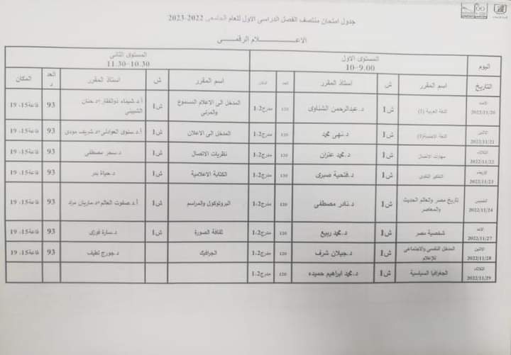 تبدأ غدًا.. ننشر جداول امتحانات الميدتيرم للفصل الدراسي الأول لطلاب إعلام القاهرة