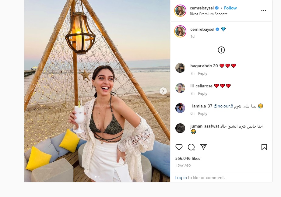 وحرصت بايسال على نشر إحدى الصور عبر حسابها على موقع تبادل الصور والفيديوهات إنستجرام، موضحة أنها في زيارة لأحد منتجعات شرم الشيخ.