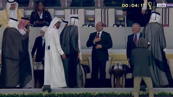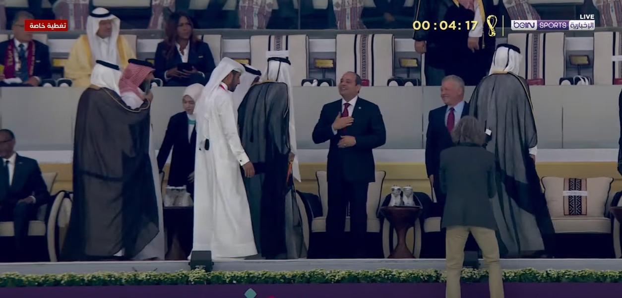 شهدت المقصورة الرئيسية لاستاد البيت الذي يحتضن فعاليات افتتاح بطولة كأس العالم لكرة القدم 2022 في قطر، عناقا حارا بين الرئيس عبد الفتاح السيسي، ووالد أمير قطر الحالي والأمير السابق حمد خليفة آل ثاني.