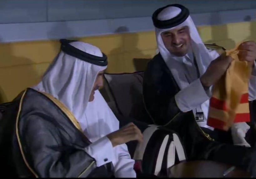 وعلى هامش حفل افتتاح كأس العالم تم إذاعة مقطع فيديو قديم ظهر فيه الشيخ حمد بن خليفة أثناء لعبة كرة القدم في فترة شبابه، وبعد عرض المقطع المشار إليه خلال حفل الافتتاح، فاجأ الأمير تميم بن حمد والده بإهدائه نسخة مشابهة من نفس التي شيرت وطلب توقيعه عليها.