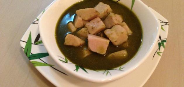 - تتبل شوربة القلقاس على النار بالملح والتوابل المرغوبة وبعد النضج يضاف لها خليط السلق.