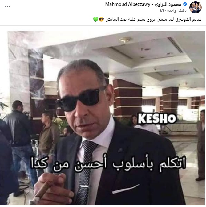 في حين سخر محمود البزاوي من خسارة الأرجنتين أمام منتخب السعودية، حيث نشر صورة له، عبر حسابه الشخصي بموقع التواصل الاجتماعي فيسبوك، قال فيه: سالم الدوسري لما ميسي يروح يسلم عليه بعد الماتش.