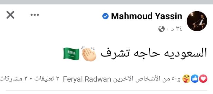 وكتب السيناريست عمرو محمود ياسين، عبر حسابه الشخصي بـ فيسبوك: الله عليكي يا سعودية، وعلى الفور انهالت عليه التعليقات من متابعيه، الذين أعربوا عن سعادتهم بفوز المنتخب السعودي.