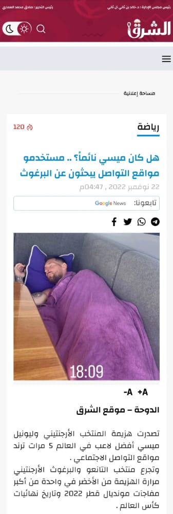 رصدت صحيفة الشرق ردود أفعال الجماهير، والتي كانت أغلبها سخرية من النجم الأرجنتيني ليونيل ميسي قائد منتخب بلاده، حيث عنونت بـ هل كان ميسي نائما؟.