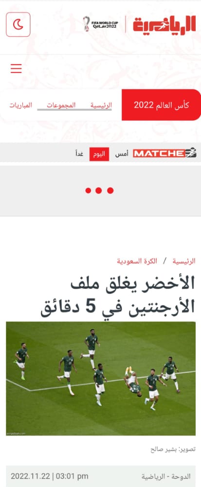 وقالت صحيفة الرياضية إن منتخب السعودية أغلق ملف الفوز على الأرجنتين في 5 دقائق بتسجيل هدفين خلالهما، والقضاء على آمال راقصي التانجو في الفوز خلال أول مباراة.