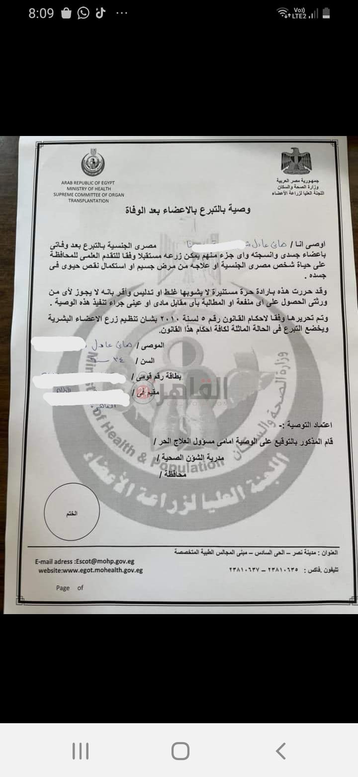 ذهبت إلى الشهر العقاري لتوثيق تبرعي بالأعضاء ولكن فشلت المحاولة.. هكذا كانت أول محاولة لـ هاني لتوثيق التبرع، والتي باءت بالفشل.