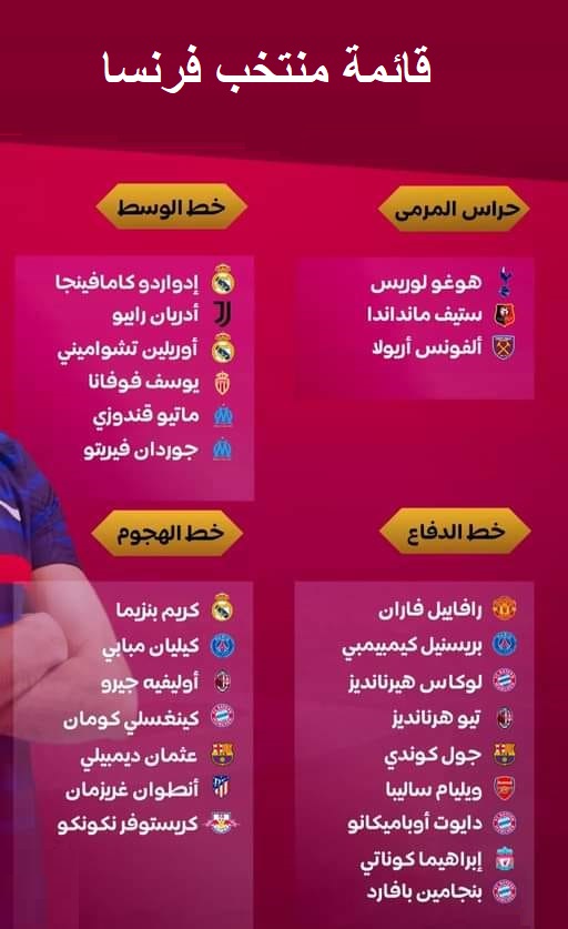 أعلن المدرب ديدييه ديشان عن تشكيل منتخب فرنسا لمواجهة الدنمارك في كأس العالم 2022، وجاء كالآتي:
