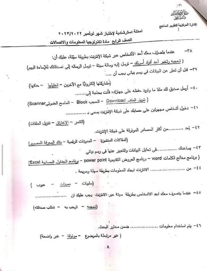 وينشر موقع القاهرة 24، لطلاب الصف الرابع والخامس الابتدائي وأولياء أمورهم؛ النماذج الاسترشادية في مادة تكنولوجيا المعلومات والاتصالات.