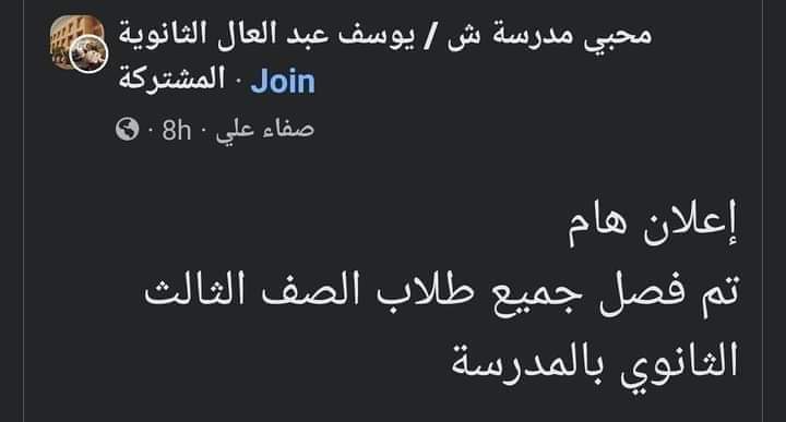 تداول مستخدمو مواقع التواصل الاجتماعي فيسبوك، منشور ادعوا أنه مُسرّب من جروب خاص لأولياء أمور وإدارة مدرسة الشهيد يوسف عبد العال الثانوية بقرية خرسيت التابعة لمركز طنطا محافظة الغربية.