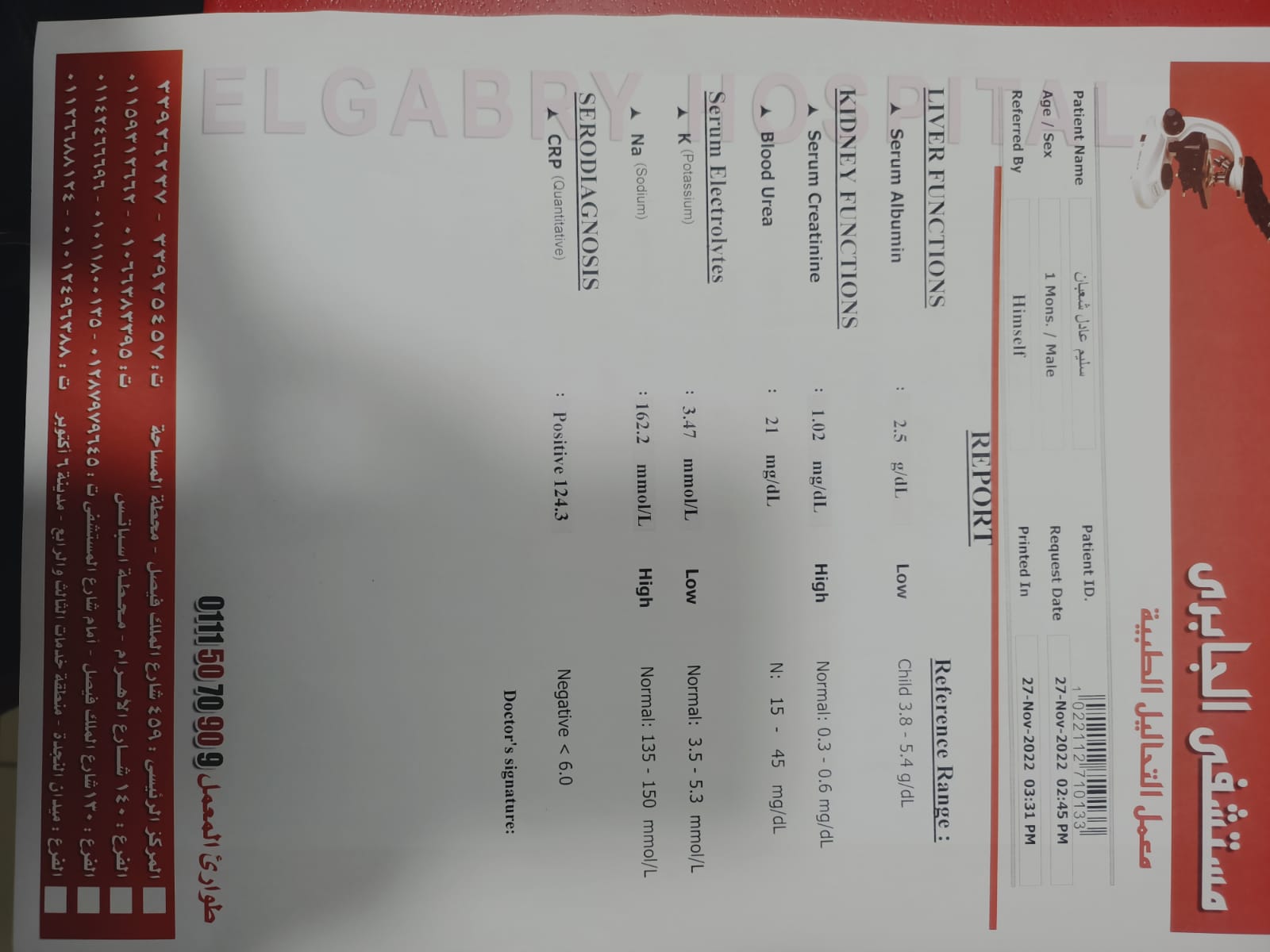 وأشارت إلى أنهم ذهبوا إلى مستشفى الجابري لوضع الطفل في الرعاية المركزة، وقام المستشفى بعمل التحاليل اللازمة للطفل التي أثبتت أن نسبة الميكروب في دم الطفل مرتفعة جدًا بنسبة 286، حيث إن المعدل الطبيعى للميكروب هو 6.