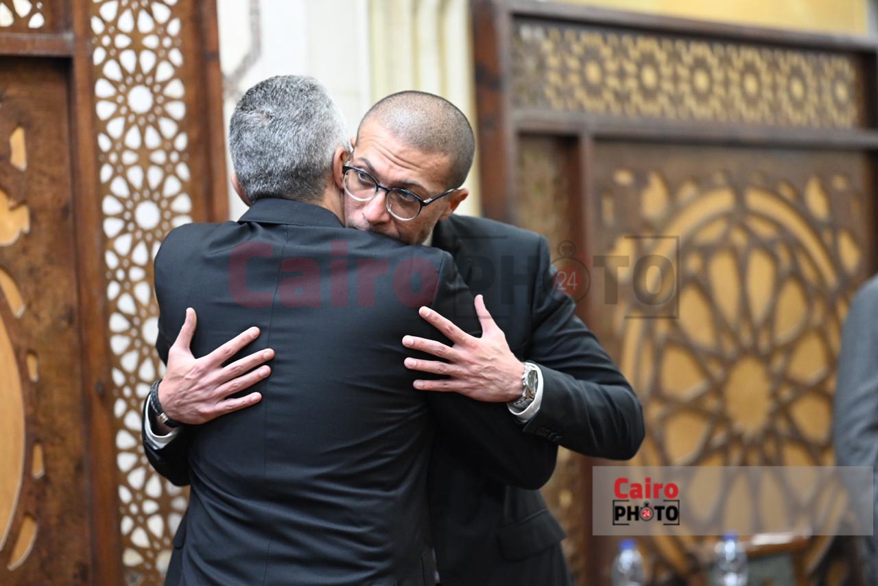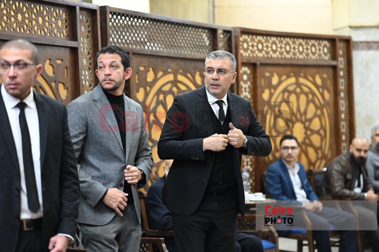 عمرو الليثي يتلقى العزاء في وفاة عمه بمسجد الحامدية الشاذلية