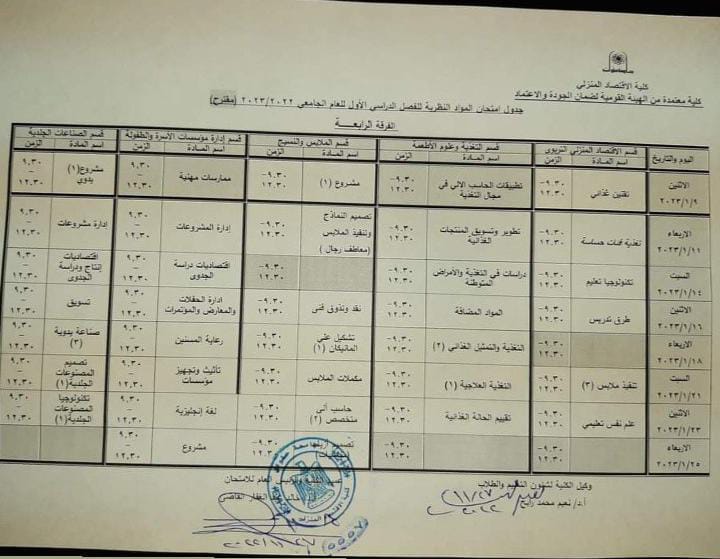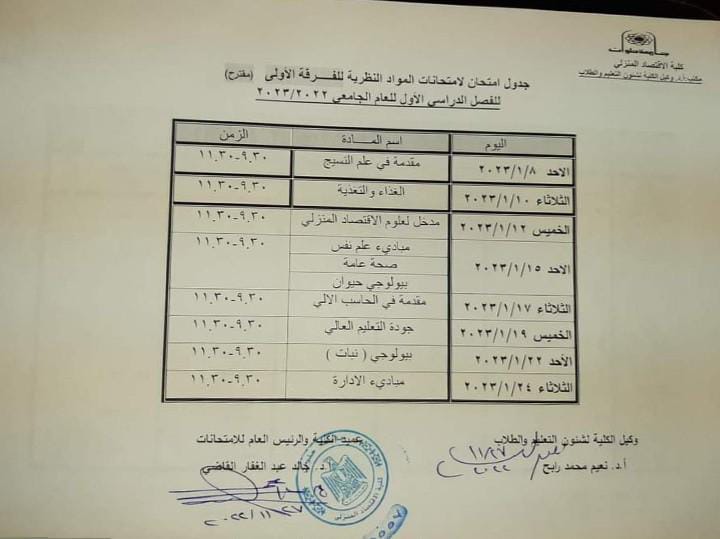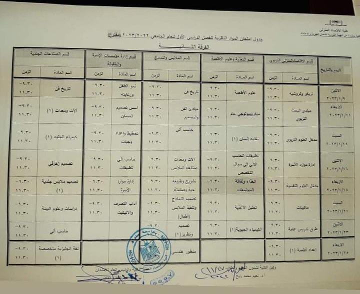 اقتصاد منزلي حلوان تعلن جداول مقترحة لامتحانات الفصل الدراسي الأول