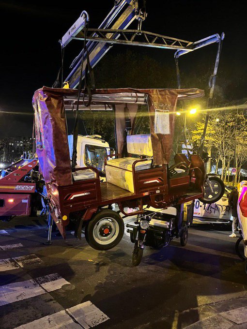 صادرت الشرطة الفرنسية 16 توك توك، في المنطقة المحيطة بـ برج إيفل، مما أدى إلى اعتقال شخصين، بعد فحص مركبات توك توك.