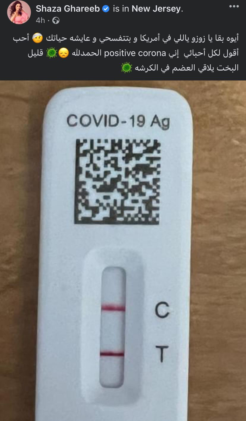 وكتبت شذى، منشورًا عبر حسابها الشخصي بموقع التواصل الاجتماعي فيسبوك، حيث قالت: أيوه بقا يا زوزو ياللي في أمريكا وبتتفسحي وعايشه حياتك.. أحب أقول لكل أحبائي إني positive corona، الحمدلله.. قليل البخت يلاقي العضم في الكرشة.