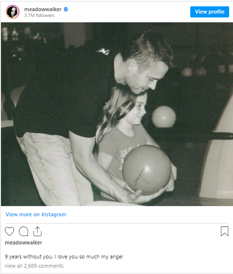 وكتبت بعدها ميادو بول ووكر عبر خاصية الاستوري على انستجرام: أحبك يا أبي.
