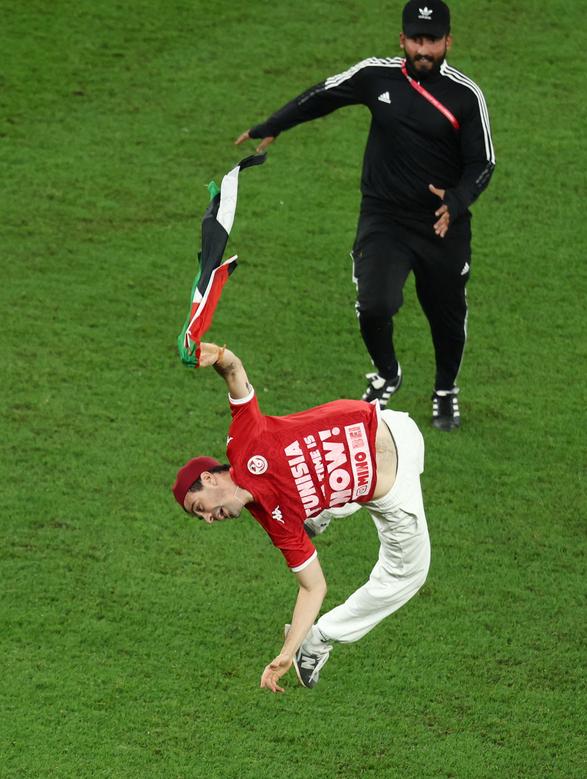 وخلال أحداث المباراة باستاد المدينة التعليمية في الريان، اقتحم مشجع تونسي الملعب ورفع علم دولة فلسطين، وحازت تلك اللقطة على إعجاب واسع بين رواد مواقع التواصل الاجتماعي.