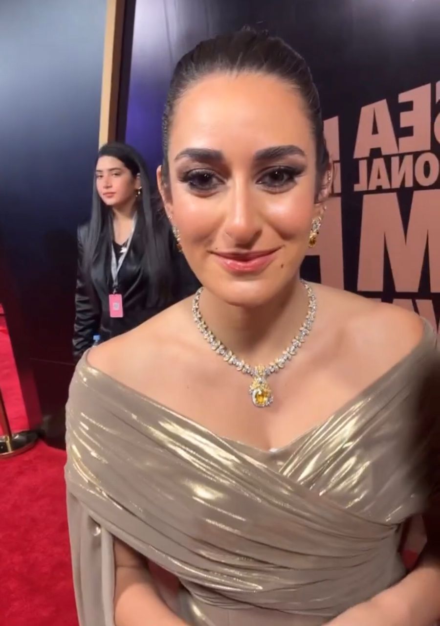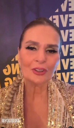 كما تألقت الفنانة يسرا بـ فستان طويل ذهبي اللون ومطرز ووضعت مكياج وإكسسوارات بسيطة، ومن المقرر أن تُكرم يسرا بجائزة اليسر الفخرية بجانب الفنان الهندي شاروخان والممثل والمخرج البريطاني غاي ريتشي.