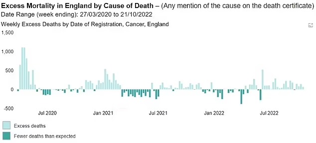 وأشار التقرير الخاص بهيئة الصحة الوطنية البريطانية، إلى أن الآثار الجانبية الغير مباشر لفيروس كورونا أثرت بشكل كبير على مرضى السرطان، حيث توقفت فحوصات السرطان بشكل كبير خلال الوباء، والذي بدوره أدى إلى تأخير العلاج وازدياد الحالات سوءًا، ووفاة عدد كبير من المرضى.