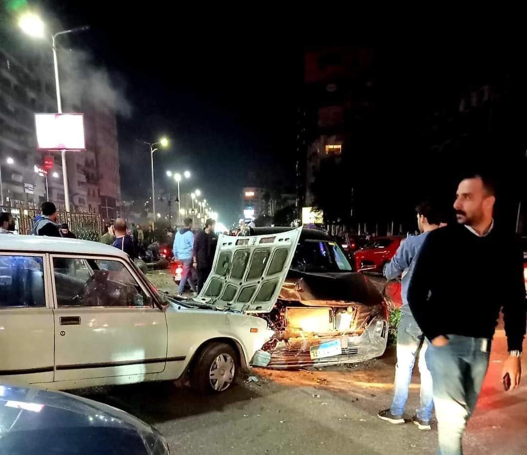 إصابة 4 أشخاص في تصادم 5 سيارات بشارع البحر بطنطا