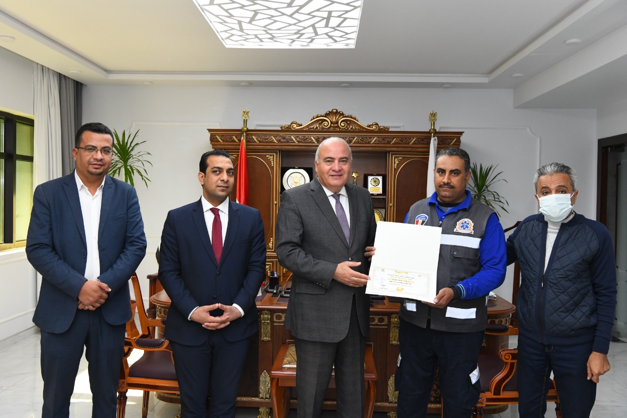 محافظ قنا يكرم مسعفين لأمانتهم وردهم مبلغ 366 ألف جنيه عثروا عليه مع ضحايا حادث سير