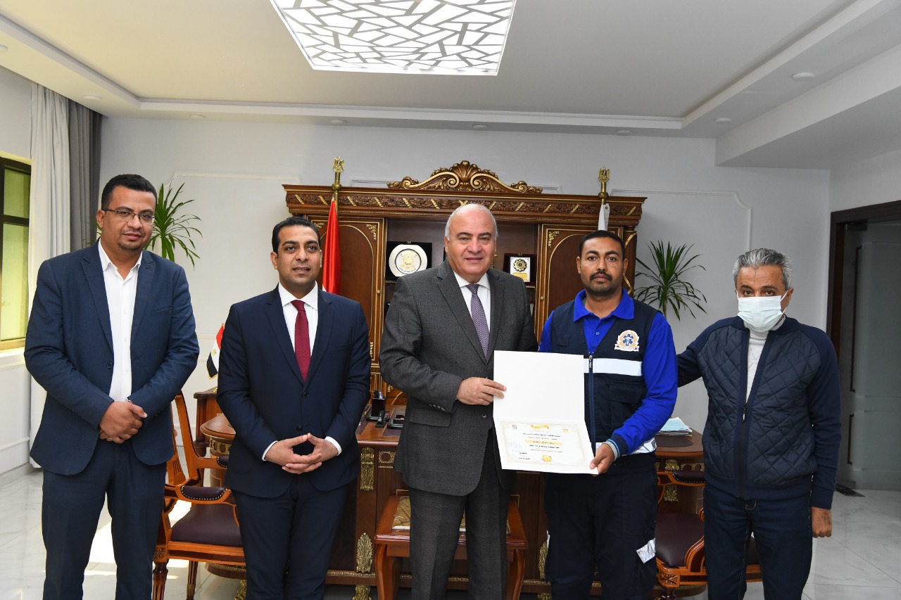 وسلم محافظ قنا المسعفين شهادة تقدير، ووجه بصرف مكافأة مالية لكل من: جعفر خير مشرف عام الإسعاف بالمحافظة، ومحمد ربيع مشرف الإسعاف بقطاع الشمال، ومحمد نور الدين، مسعف، وعلي محمد علي، مسعف، وصفوت محمد عامر، سائق، وإبراهيم سيد، سائق، تقديرا لأمانتهم وحرصهم على رد المبلغ المالي إلى أصحابه ليؤكدوا رسالتهم السامية والتزامهم بقسم المهنة في الحفاظ على أرواح المرضى والمصابين وأماناتهم.