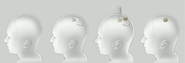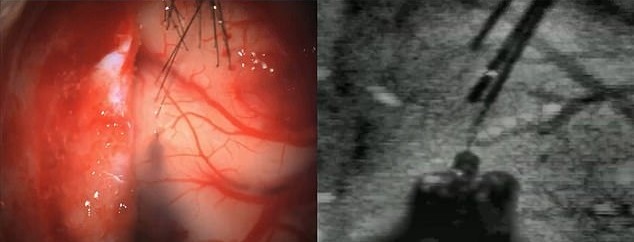 يزيل الروبوت جزءًا صغيرًا من الجمجمة، ويربط الأقطاب الكهربائية الشبيهة بالخيوط بمناطق معينة من الدماغ، ويخيط الثقب ويبقى الأثر المرئي الوحيد هو مكان الخياطة.