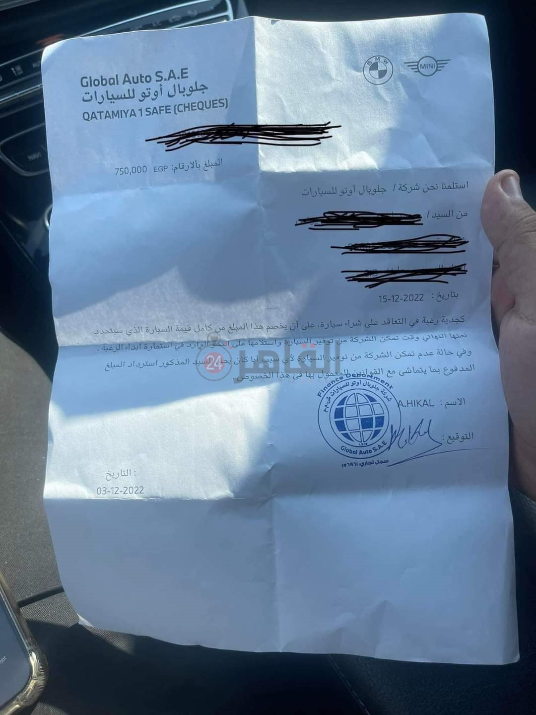 وأوضحت إحدى إيصالات الدفع، أن عميل حجز أحد طرازات بي إم دبليو بسعر وصل إلى 750 ألف جنيه.