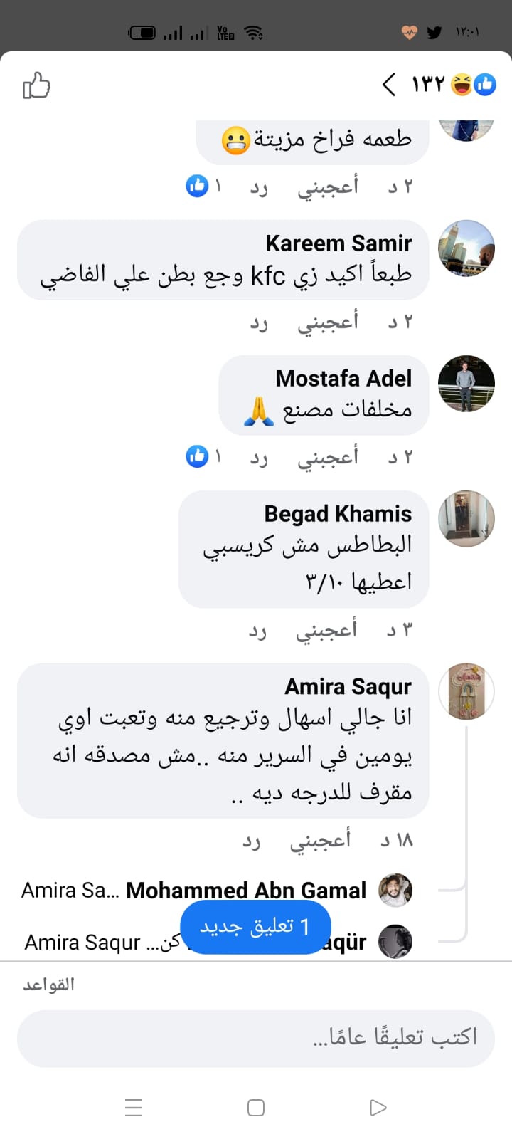 وتداول مستخدمو مواقع التواصل الاجتماعي؛ بعض التعليقات عن الطعم السيء لشيبسي kfc بنطاق واسع على فيسبوك في مصر، مرفقة معها صورة لأكياس البطاطس المقرمشة بنكهتين الخلطة السرية والزنجر، بطعم دجاج كنتاكي، ومدون عليها سعر 5 جنيهات، معتبرين أن الطعم لا يتناسب مع قيمته وأنه أقل من المستوى المعهود للشركة.