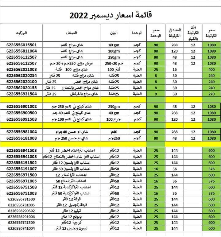 بعد زيادة أسعار ليبتون والعروسة.. تثبيت سعر شاي أم حسن لشهر ديسمبر وانخفاض بعض أصناف البن | مستند