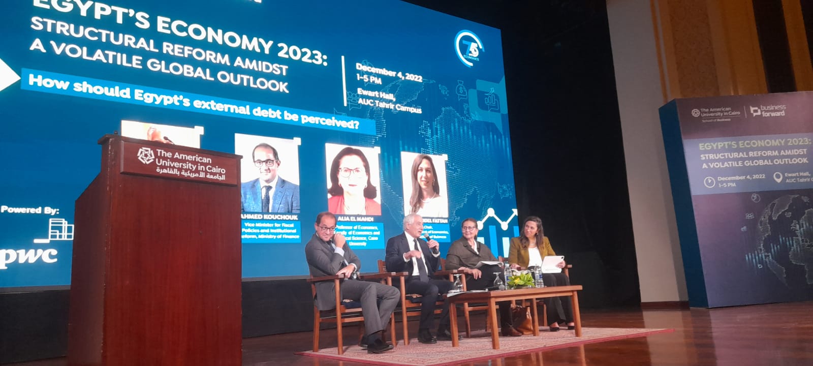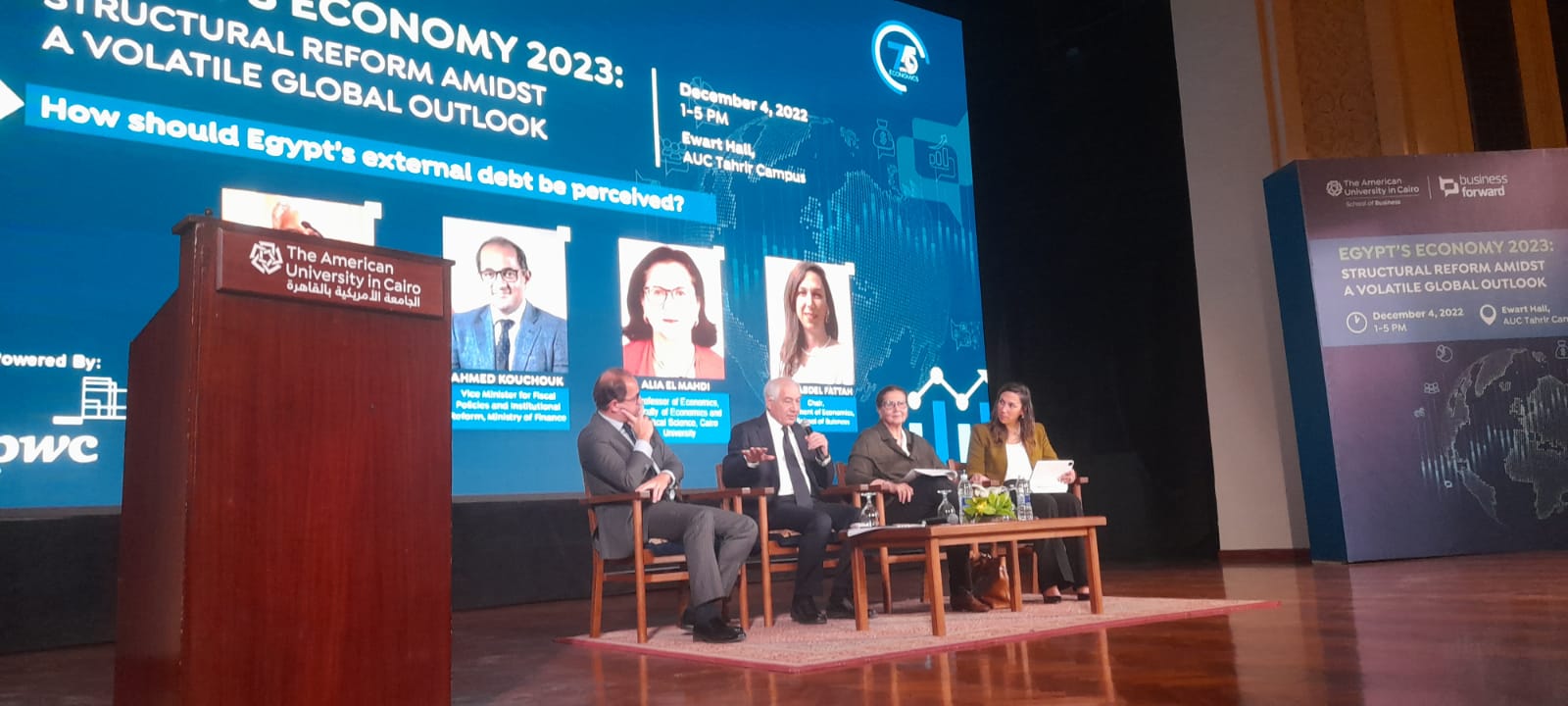كما شارك في الجلسة الثانية التي ناقشت الدين الخارجي لمصر كل من أحمد جلال، الخبير الاقتصادي ووزير المالية الأسبق، وعلياء المهدي، الخبير الاقتصادي ورئيس مجلس إدارة الجمعية المصرية للحديد والصلب، وأحمد كوجك، خريج الجامعة عام 1999 ونائب وزير المالية للسياسات المالية والإصلاح المؤسسي.