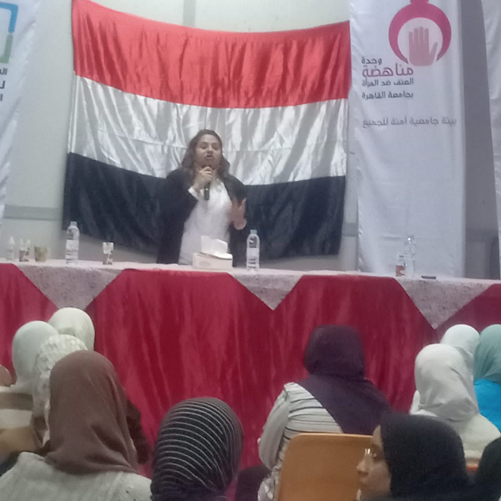 بدأت فعاليات اليوم الأول بمدينة الطالبات بالجيزة، بكلمة الدكتورة أميرة تاوضروس مدير المركز الديموجرافى والمنسق العام لمشروع تنمية الأسرة المصرية، تحدثت فيها مع الفتيات عن دور وحدة مناهضة العنف في دعمهن بجامعة القاهرة، وأكدت أن الفترة القادمة ستكون هناك عضوة هيئة تدريس من كل كلية بالجامعة لتحقيق تواصل مستمر مع الفتيات بجميع الكليات المختلفة.