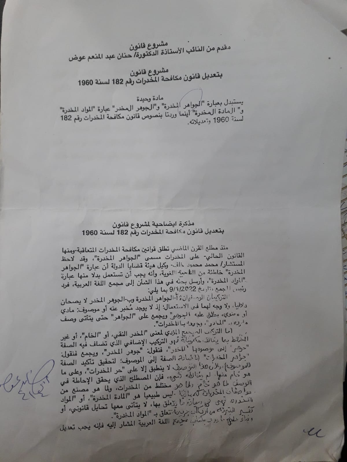 تناقش لجنة الشؤون الدستورية والتشريعية في مجلس النواب، برئاسة النائب إبراهيم الهنيدي؛ تعديلات جديدة على قانون مكافحة المخدرات رقم 182 لسنة 1960، المقدمة من النائبة الدكتورة حنان عبد المنعم عوض، وعُشر أعضاء المجلس، وذلك خلال اجتماعاتها المقبلة، بعد أن أحالها رئيس مجلس النواب، خلال الجلسة العامة للمجلس النواب، اليوم.