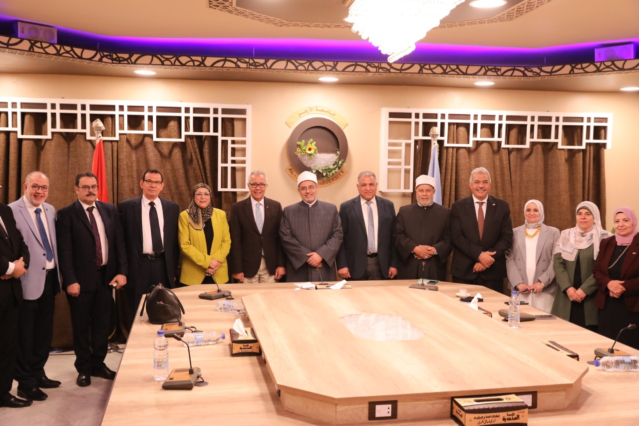 وفي بداية اللقاء رحب الدكتور سلامة داود، رئيس الجامعة، بالوفد في رحاب جامعة الأزهر، مؤكدًا حرص الجامعة على الانفتاح والتعاون مع جميع مؤسسات الدولة الوطنية، مشيرًا إلى أن جامعة الأزهر تعد القوى الناعمة لمصر محليًّا وإقليميًّا ودوليًّا.