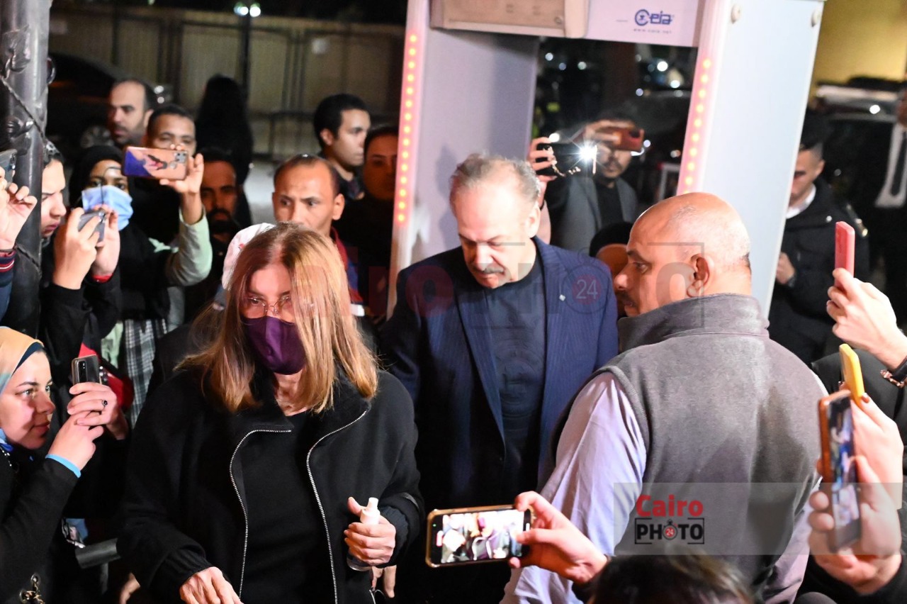 إلهام شاهين ودنيا سمير غانم وميرفت أمين في عزاء الإعلامي مفيد فوزي بكنيسة المرعشلي