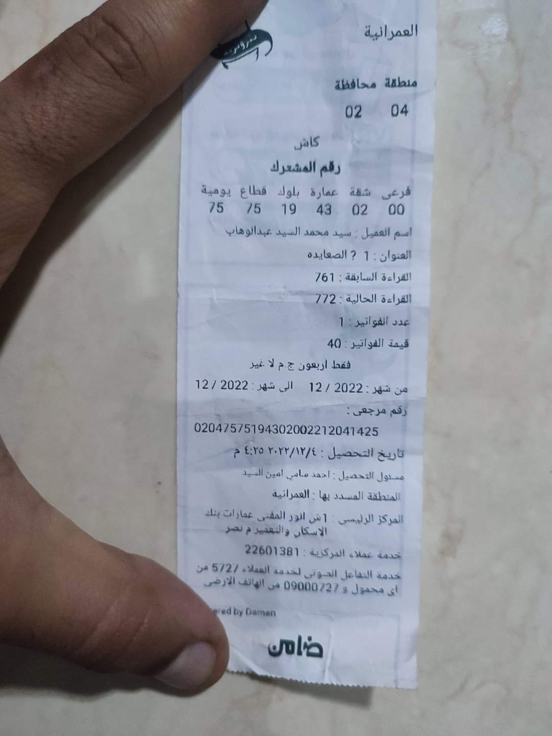 أضافت أن السيدة لا يوجد أي أوراق تثبت هويتها باستثناء إيصال غاز طبيعي لوحدة سكنية بمنطقة العمرانية وإيصال صرف سلع تموينيه.