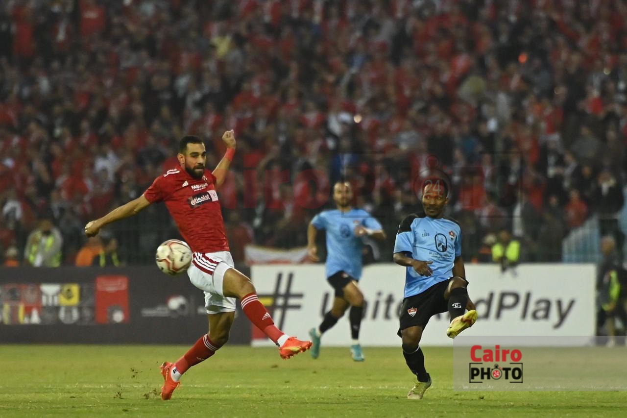 وحاول فريق غزل المحلة استعادة زمام الأمور في الشوط الأول بتكثيف الهجوم والضغط على دفاعات الأهلي، وألغى محمد الحنفي حكم المباراة هدفًا لصالح زعيم الفلاحين بعد تسلل للاعب أوريك الذي استلم تمريرة من عبده يحيى.