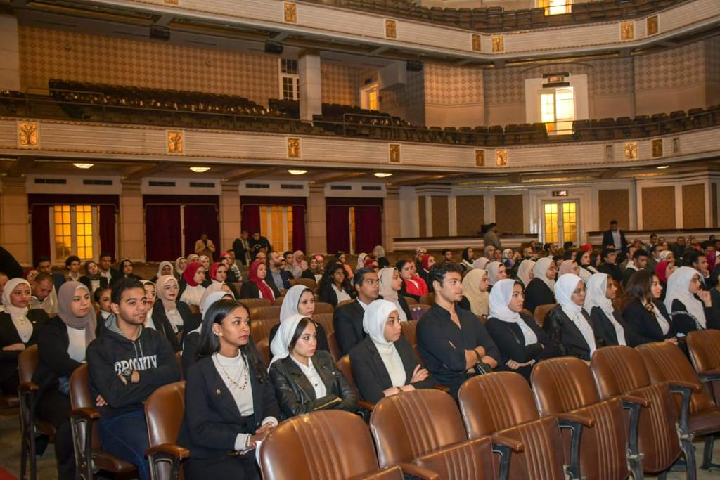 ومن جانبه، قال الدكتور جمال الشاذلي، إن الوطن له قيمة عُظمى لا بد أن يدركها الجميع ويجب إعطاؤه حقه وأن يقوم الجميع بدوره تجاه هذا الوطن لأن من لا يعرف قيمة وطنه لا يستحق أن يعيش على أرضه، موجهًا الطلاب بضرورة معرفة الأخطار الداخلية والخارجية التي تُهدد الوطن، وضرورة التصدي لها من أجل الحفاظ علي أمن وسلامة هذا الوطن، قائلًا: أنتم شباب الوطن الذين يحملون رايته الخفاقة في المستقبل.