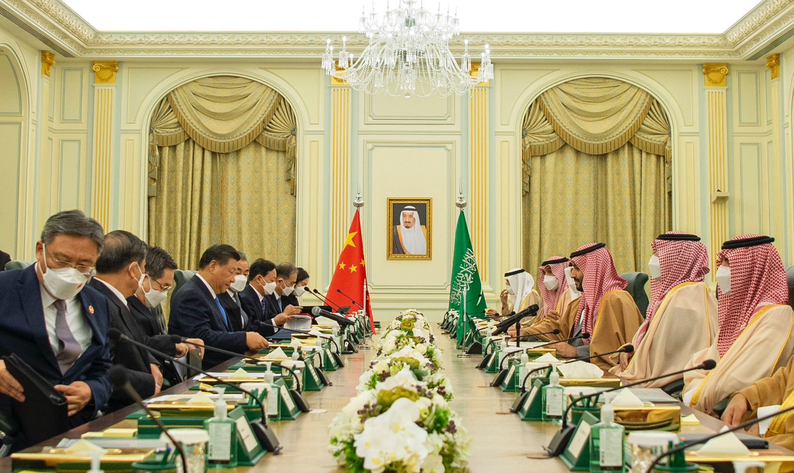 عقد ولي العهد السعودي، الأمير محمد بن سلمان بن عبد العزيز آل سعود، جلسة مباحثات رسمية مع الرئيس الصيني شي جين بينج في الديوان الملكي السعودي.