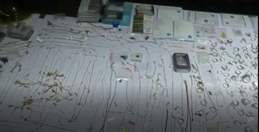 وعقب تقنين الإجراءات، تم استهداف المذكور وأمكن ضبطه حال تواجده بمقر الشركة المشار إليه، وبحوزته 597،29 قيراط من فصوص الماس مختلفة الأحجام كمية من الأحجار الكريمة مختلفة الأنواع زمرد وياقوت تقدر بـ 234 قيراط بإجمالي وزن 959 جرام و1،973 كيلو جرام مشغولات ذهبية مُرصعة بفصوص من الماس والأحجار الكريمة مختلفة الأشكال والأنواع والأحجام ومبلغ مالي عملات محلية وأجنبية من متحصلات نشاطه الإجرامي.