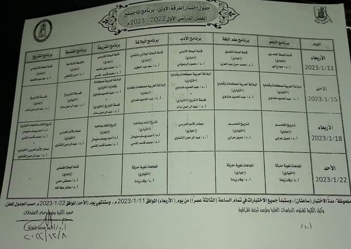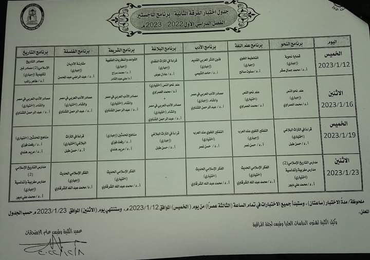 جدول امتحانات طلاب الدراسات العليا