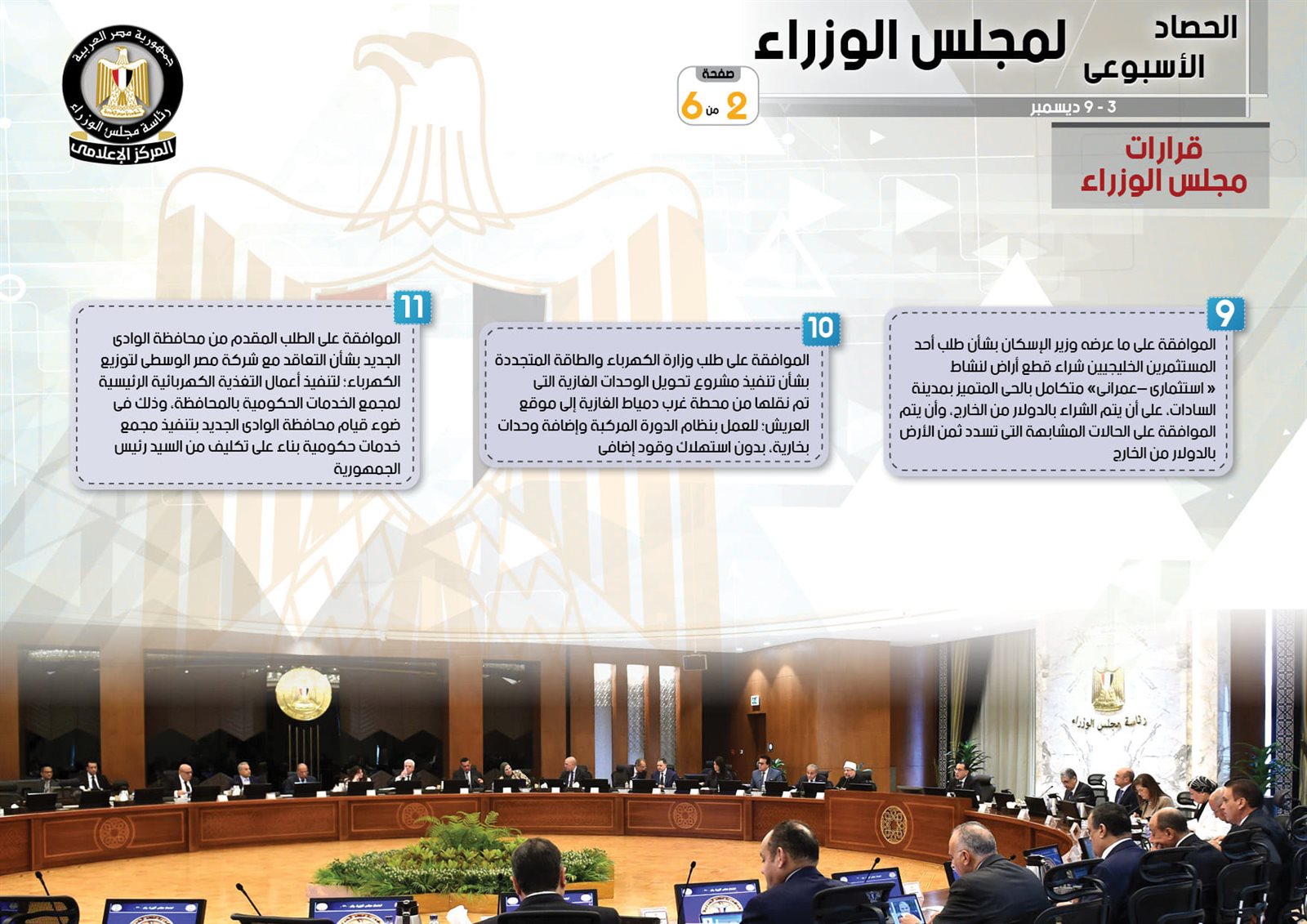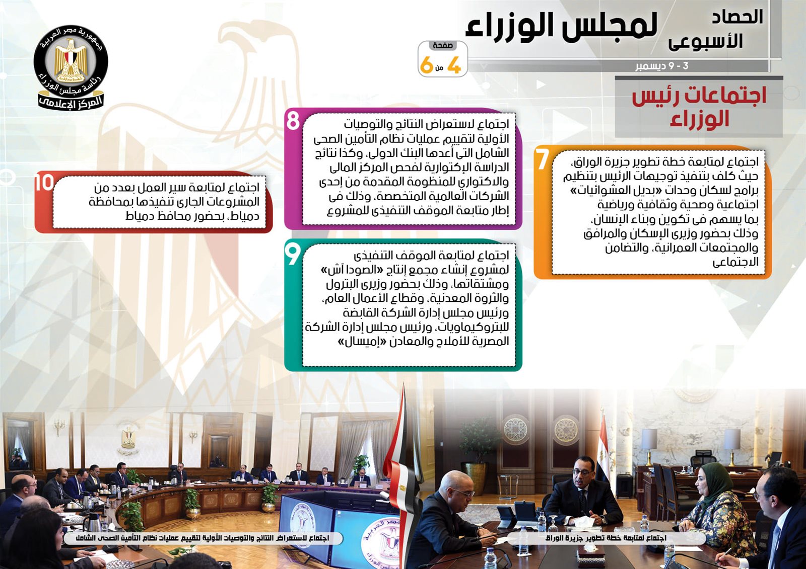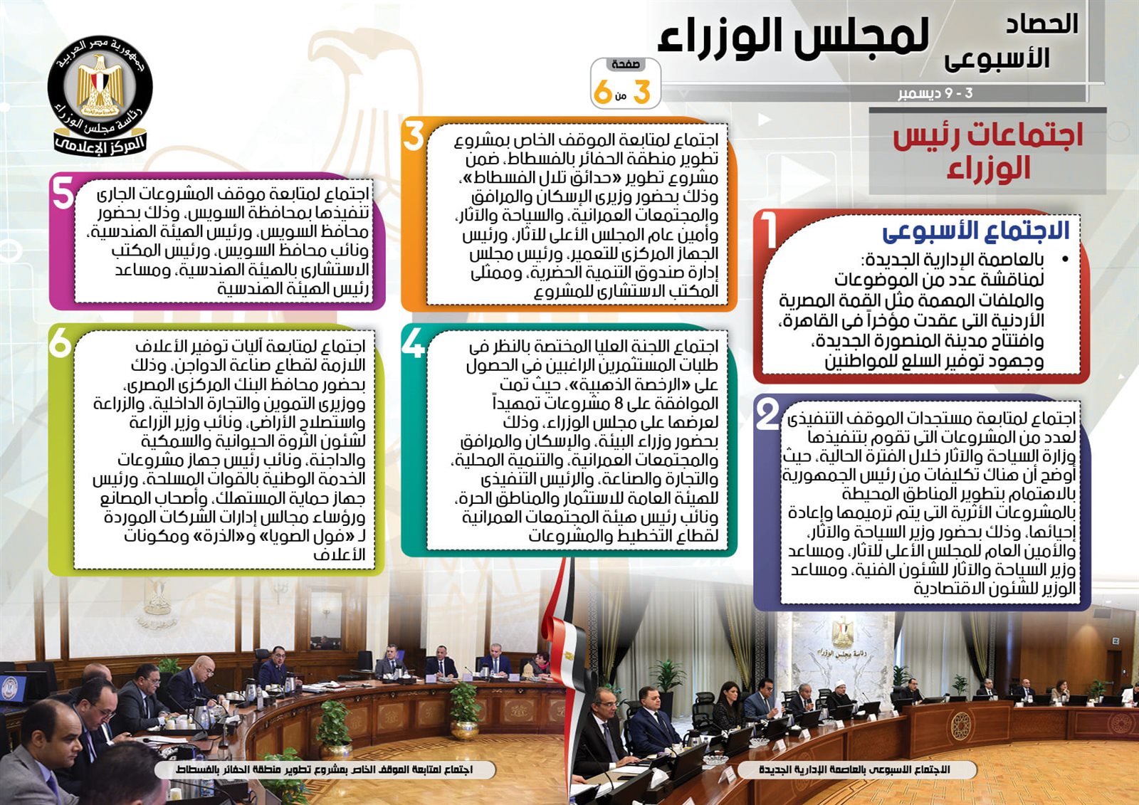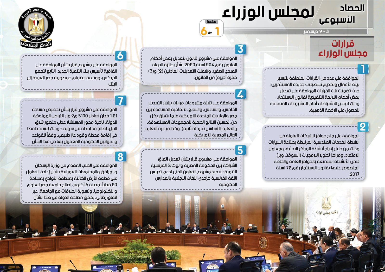 بالإنفوجراف.. الحصاد الأسبوعي لمجلس الوزراء خلال الفترة من 3حتى 9ديسمبر 2022