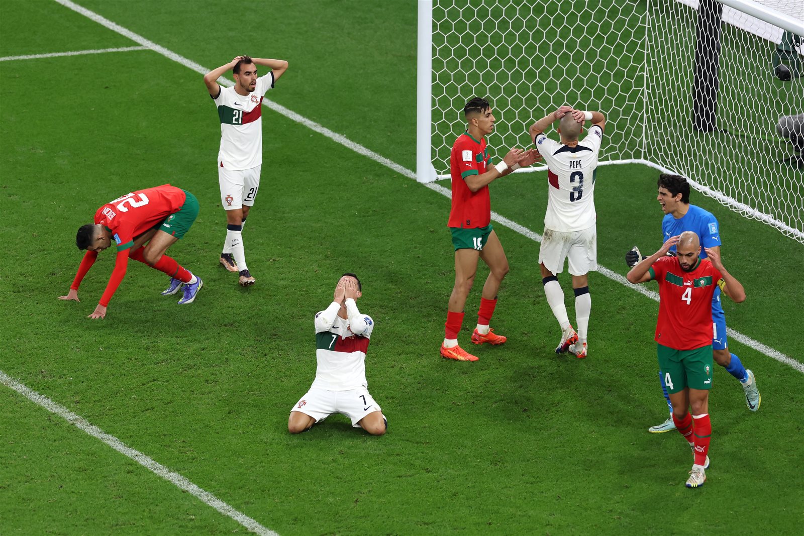 وبعد أن انتهت المباراة، بتأهل منتخب المغرب إلى نصف نهائي كأس العالم 2022 بقطر، لقطت الكاميرات كريستيانو رونالدو باكيًا بسبب خروج منتخب بلاده.