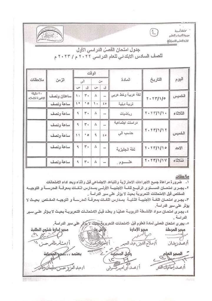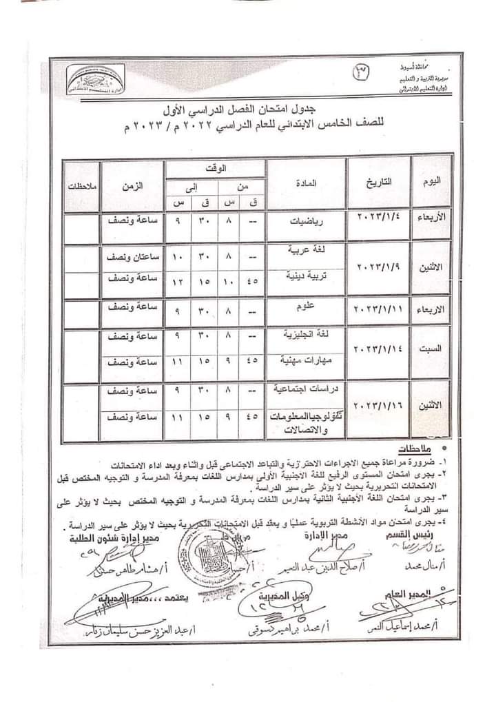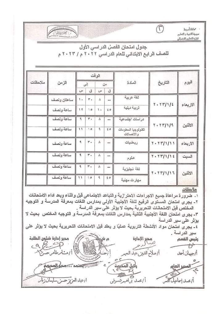 ننشر جداول امتحانات الفصل الدراسي الأول للمرحلة الابتدائية بأسيوط