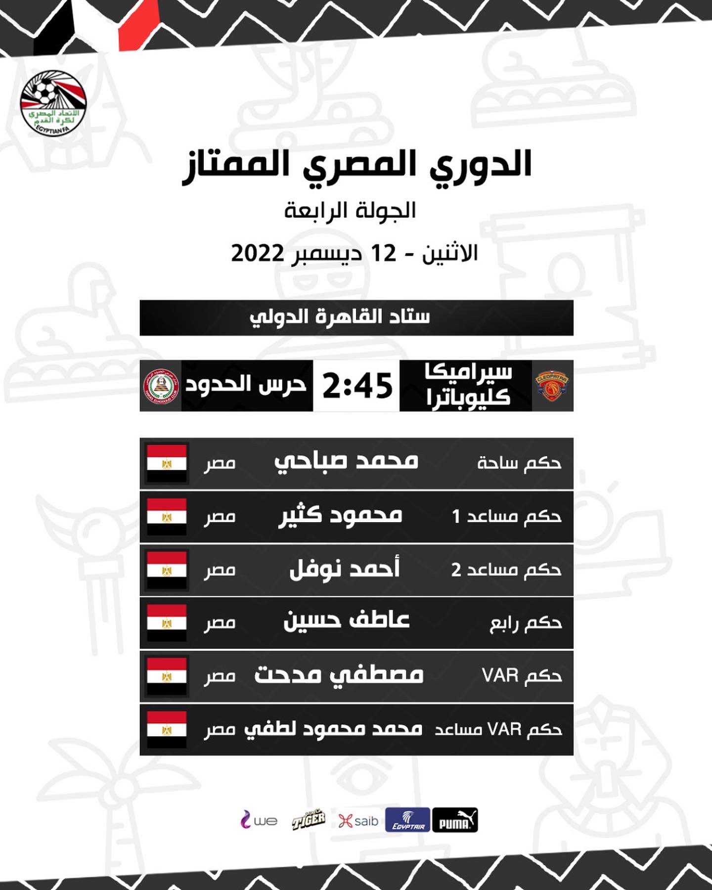 طاقم تحكيم مباراة سيراميكا كليوباترا وحرس الحدود