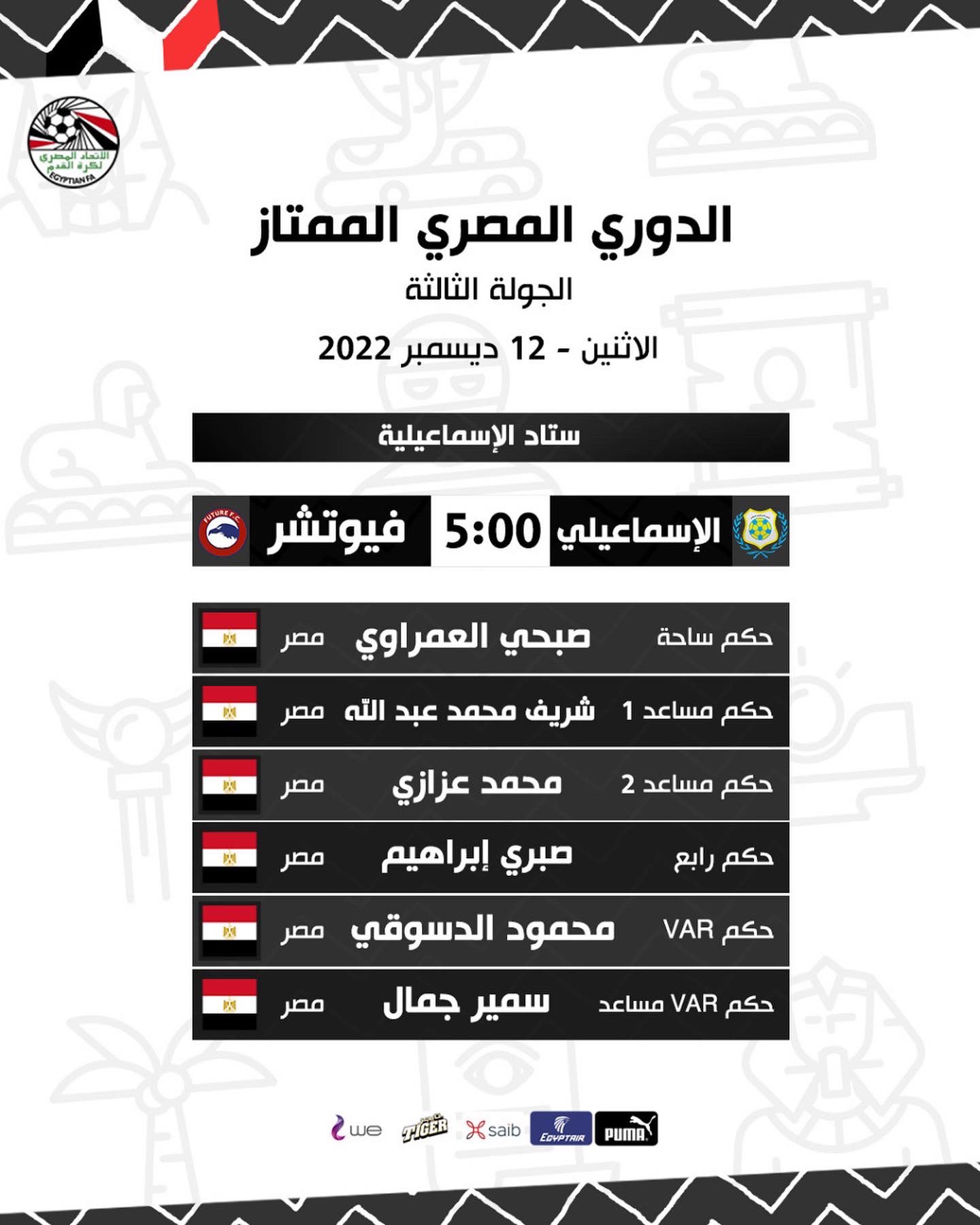 طاقم تحكيم مباراة الإسماعيلي وفيوتشر