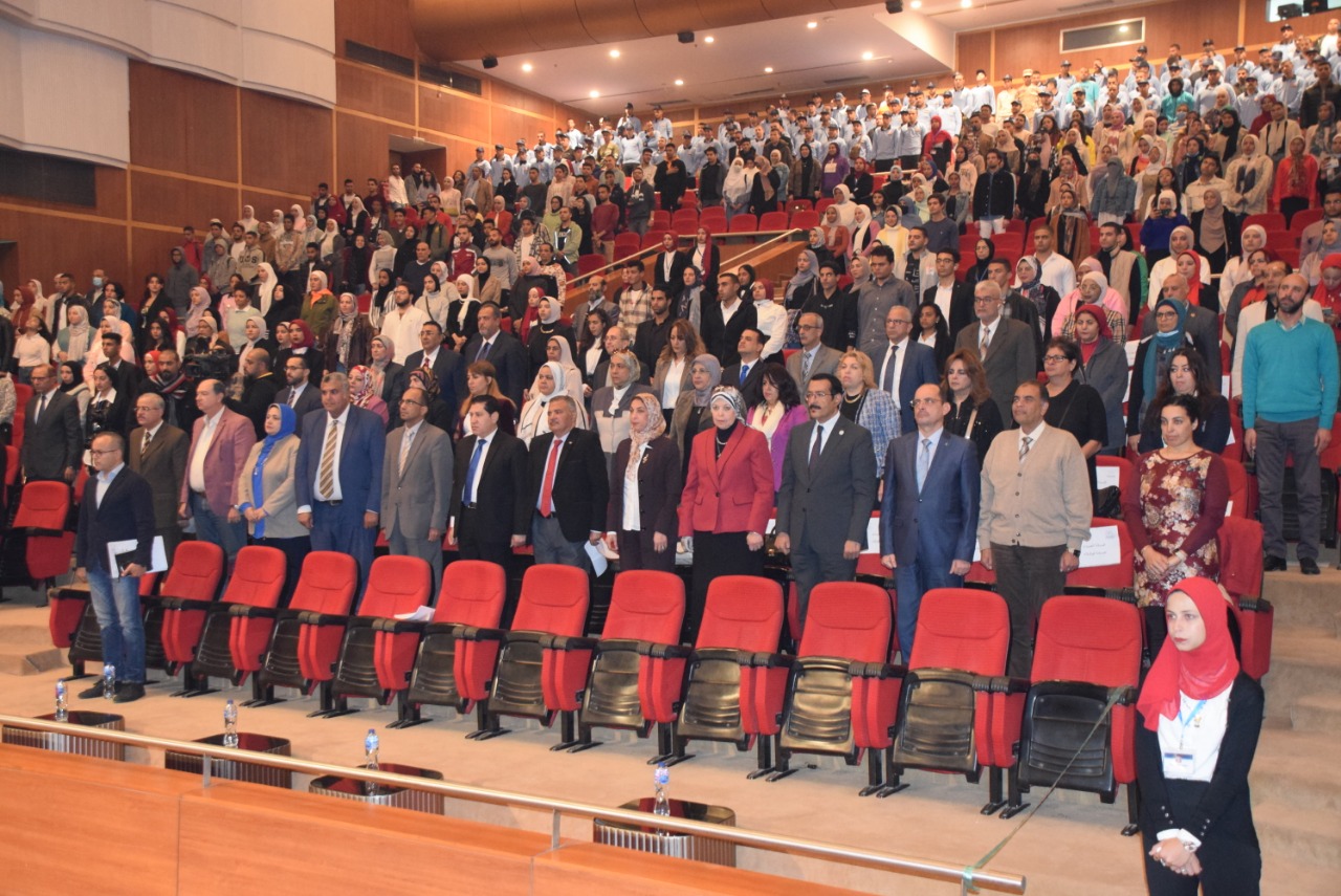 وجاءت الاحتفالية بحضور الدكتور حسام رفاعي نائب رئيس الجامعة لشئون التعليم والطلاب، والدكتورة منى فؤاد عطية القائم بعمل نائب رئيس الجامعة للدراسات العليا والبحوث، والدكتور وليد السروجى عميد كلية الطب والقائم بعمل نائب رئيس الجامعة لشئون خدمة المجتمع وتنمية البيئة، وعقدت الاحتفالية بمجمع الفنون والثقافة.
